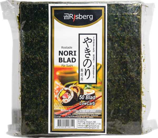 Torkade och rostade sjögräsblad, traditionellt använda vid tillverkning av sushi, men kan också strimlas och användas som en smakfull ingrediens i sallader och nudelrätter.