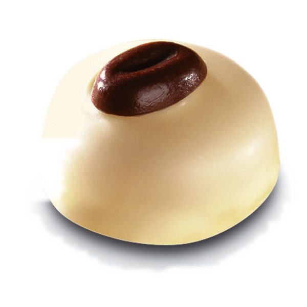 Mörk ganache smaksatt med kaffe. Överdragen med vit choklad. Dekorerad med en chokladkaffeböna. 11 g/st, ca 182 st/krt.