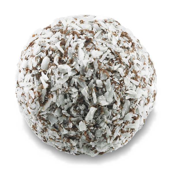 Mörk ganache smaksatt med rom från Martinique. Överdragen med mörk choklad och kokosflingor. 14 g/st, ca 70 st/krt.