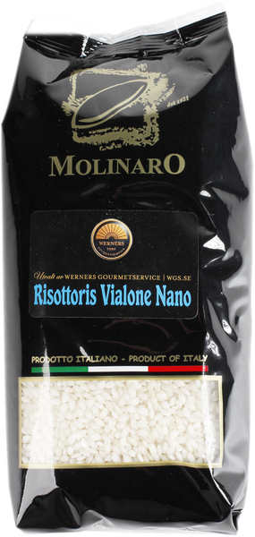Risottoris av högsta kvalitet och har en unik förmåga att absorbera smaker. Vialone Nano har ett högt stärkelseinnehåll vilket ger en krämig risotto samtidigt som riset behåller sin inre kärna och form.