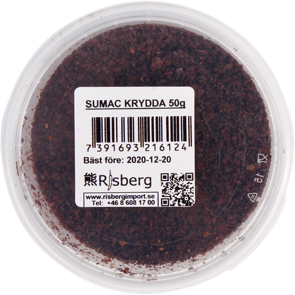 Malen sumac, en karaktäristisk krydda från Mellanöstern. Ger fin syrlighet till alla slags maträtter samt används som garnering på hummus.
