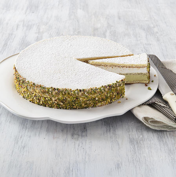 Mjuk sockerkaka fylld med krämig pistage- och ricottakräm, täckt med grovhackade pistagenötter och hasselnötter. En smakrik och texturmässigt balanserad dessert med både nötighet och mild sötma. Levereras portionsskuren i 12 bitar à 90 g för enkel hantering och jämn presentation.