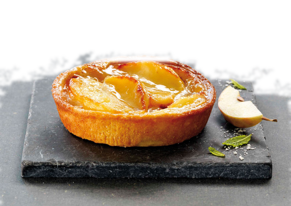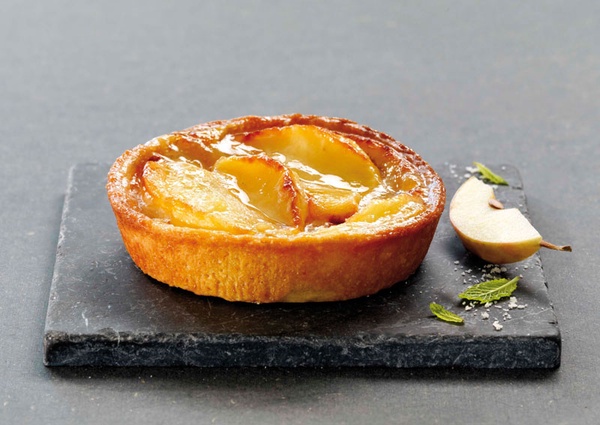 Äppletartelett med mandelcrème och karamelliserade äpplen.