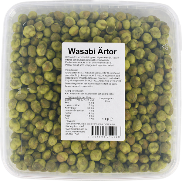 Wasabiärtor är gröna ärtor som är rullade i wasabi för att ge dem en kryddig smak. De kan serveras som snacks eller användas för att krossas och blandas i en pankopanering för att ge extra smak och krydda.